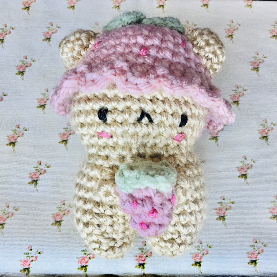 This adorable bear is a must-have in your collection of stuffies. Her sweet little face and blush pink bonnet will brighten up the whole room!